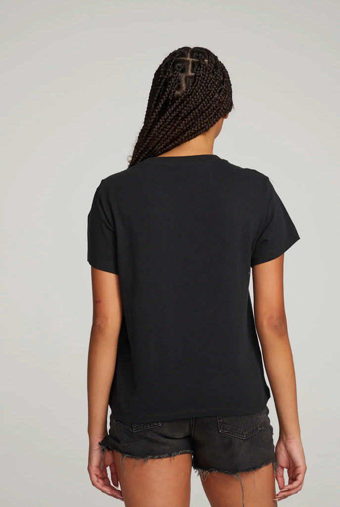 Wear this classic Call Me tee with distressed denim and a leather jacket.