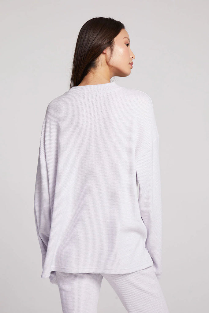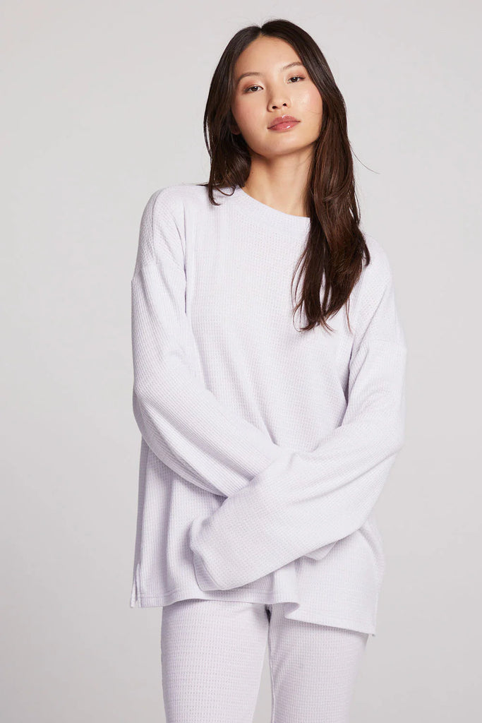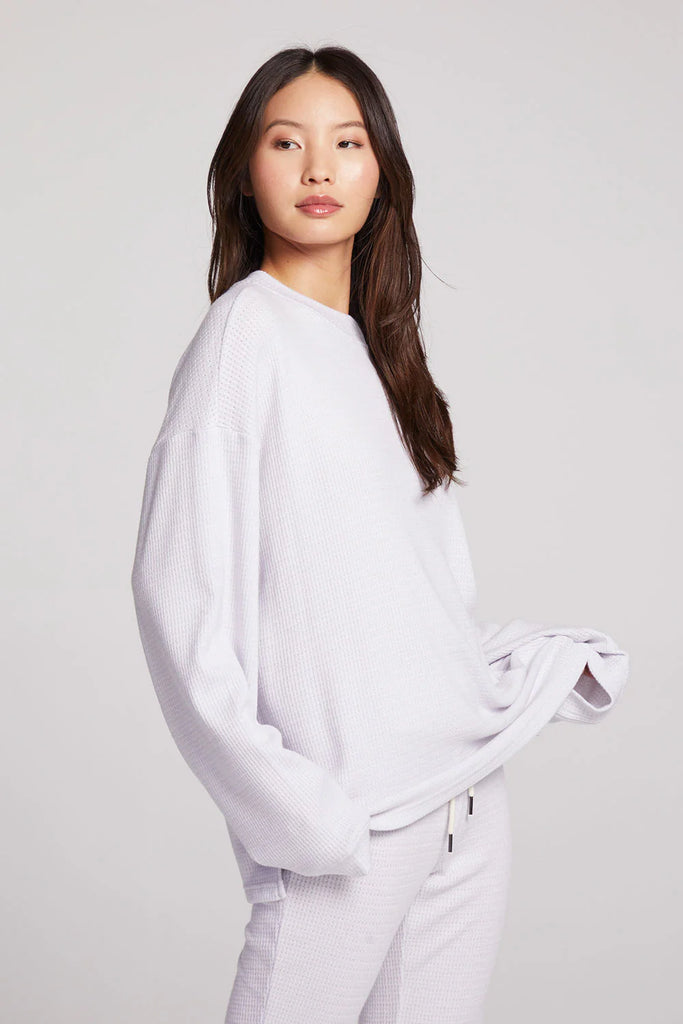 Introducing the Joah Light Heather Grey Long Sleeve. Snuggle into the oversized body and channel your inner gamine chic. Made with a luxurious blend of rayon, polyester, and nylon, it's the epitome of style simplicity. Pair with our Izzie joggers for a complete look.