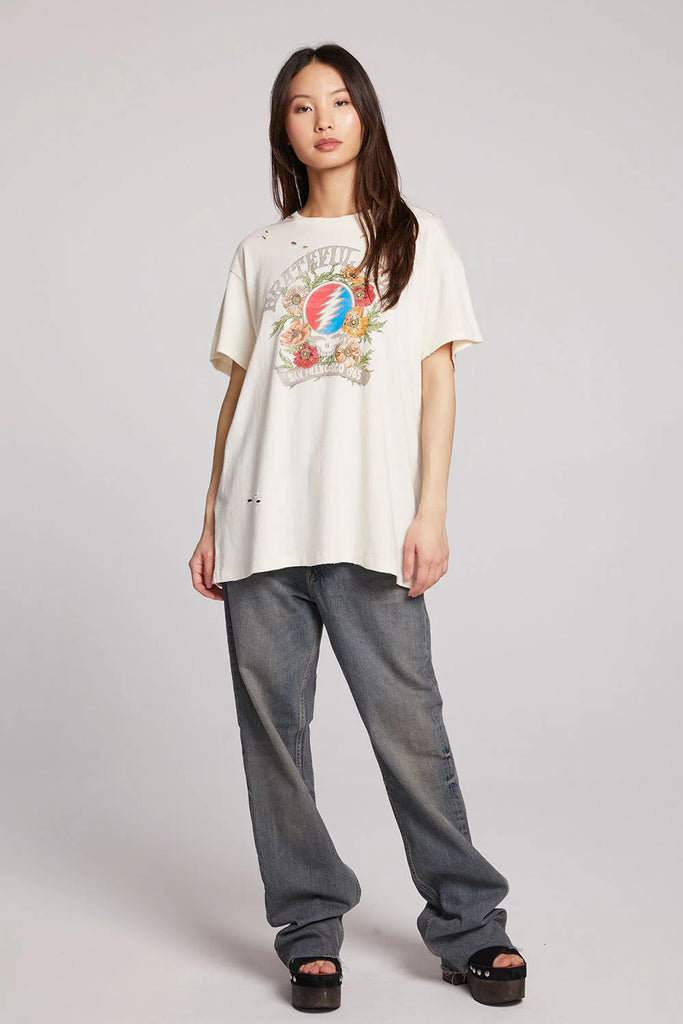 Embrace the iconic style with our Grateful Dead Floral Stealie Tee.